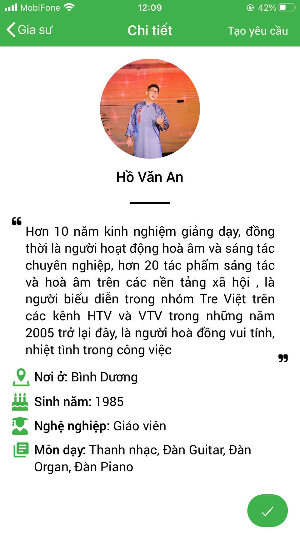 Giáo viên guitar tại Daykemtainha.vn là đội ngũ gia sư được tuyển chọn kỹ lưỡng, đáp ứng đầy đủ các tiêu chí về chuyên môn, kỹ năng sư phạm và kinh nghiệm giảng dạy thực tế.