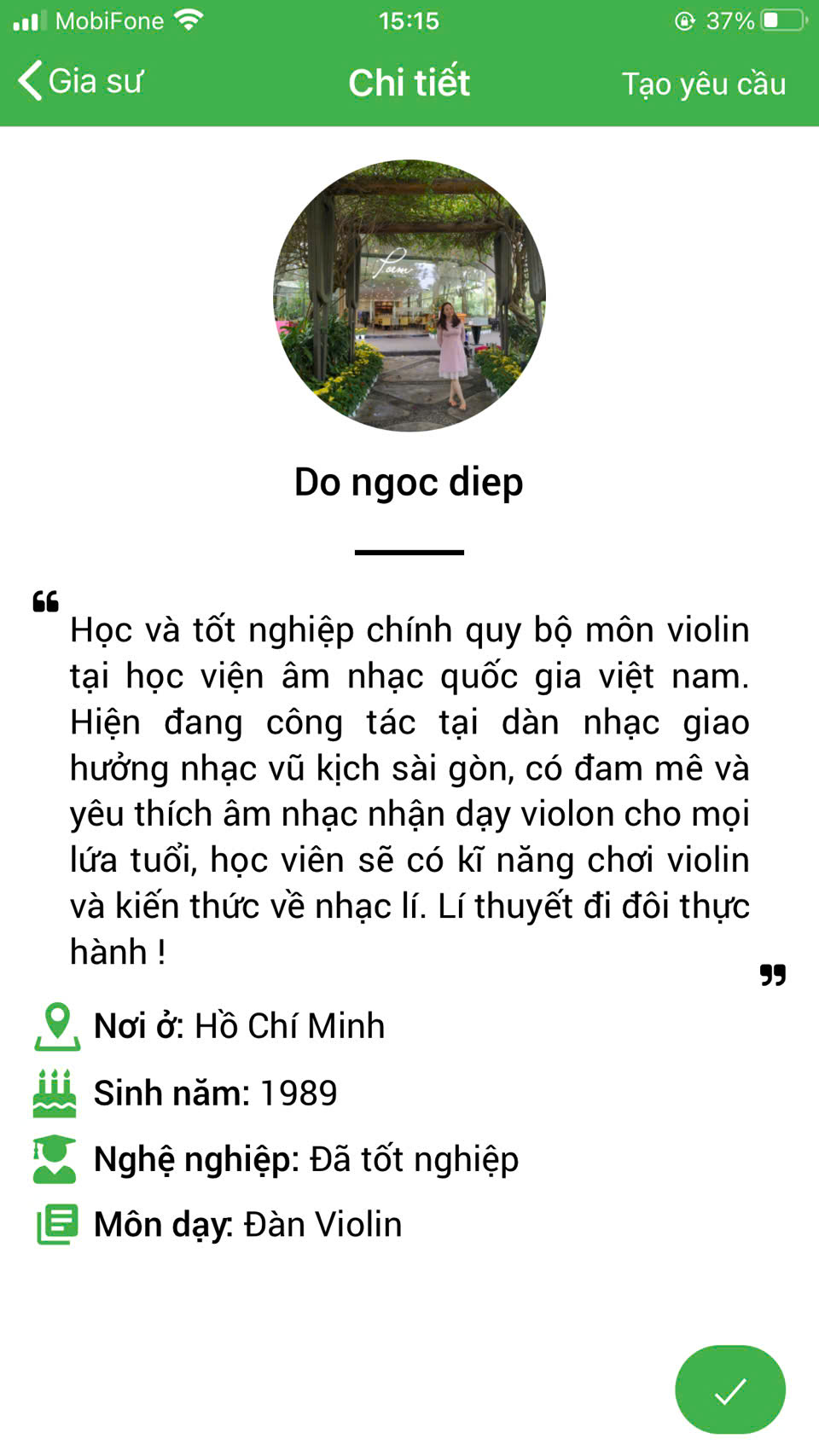 Xem hồ sơ cá nhân: quá trình học tập, kinh nghiệm giảng dạy, điểm đánh giá từ học viên trước